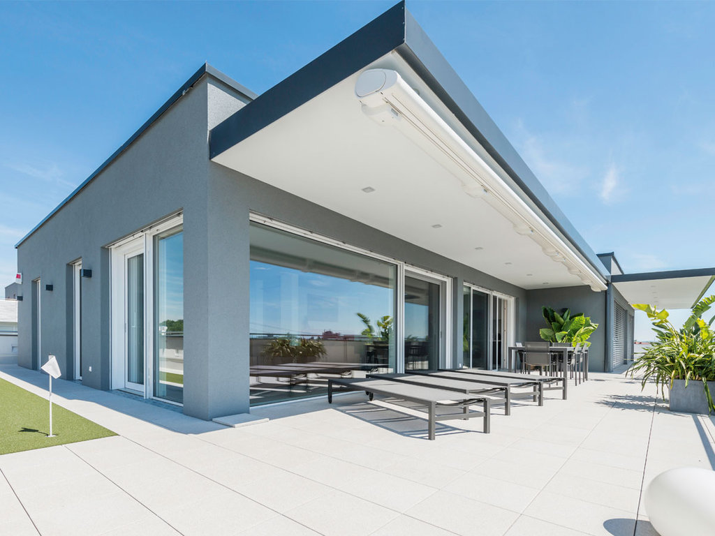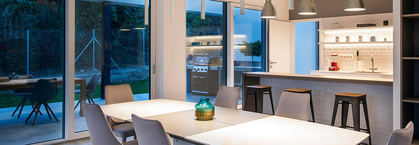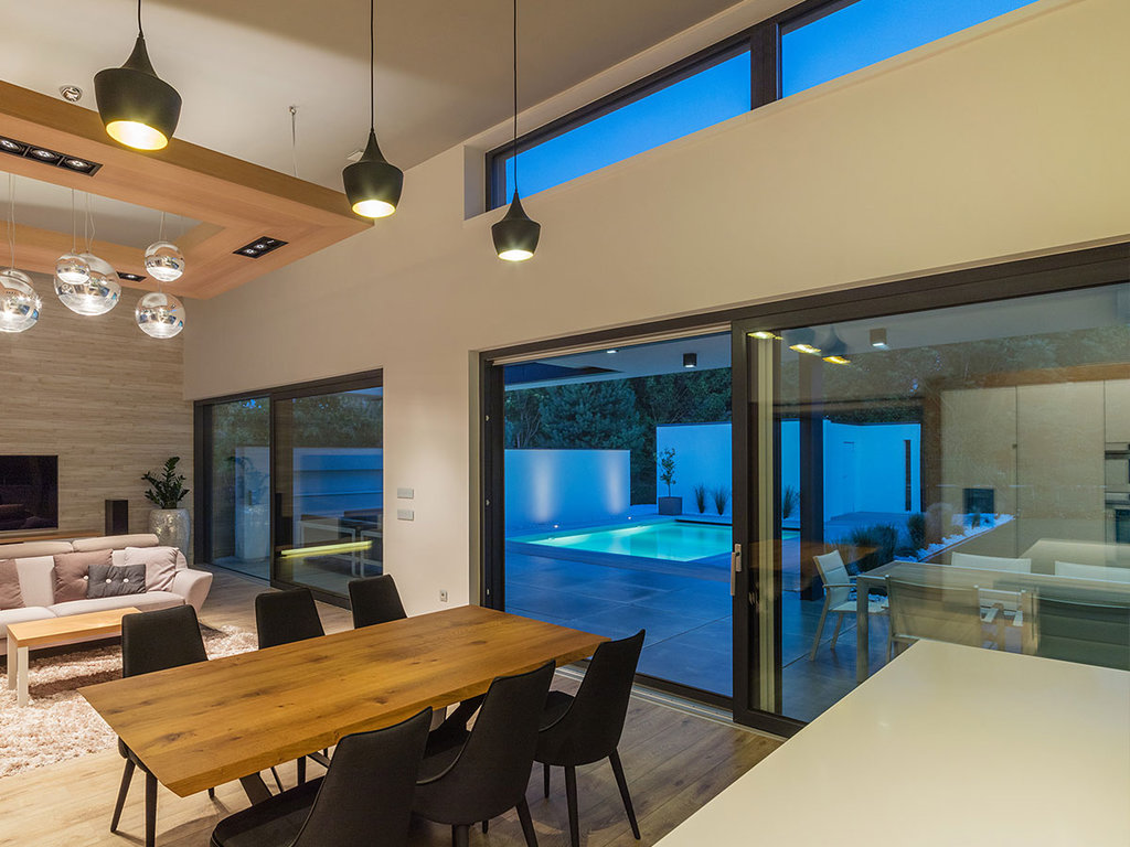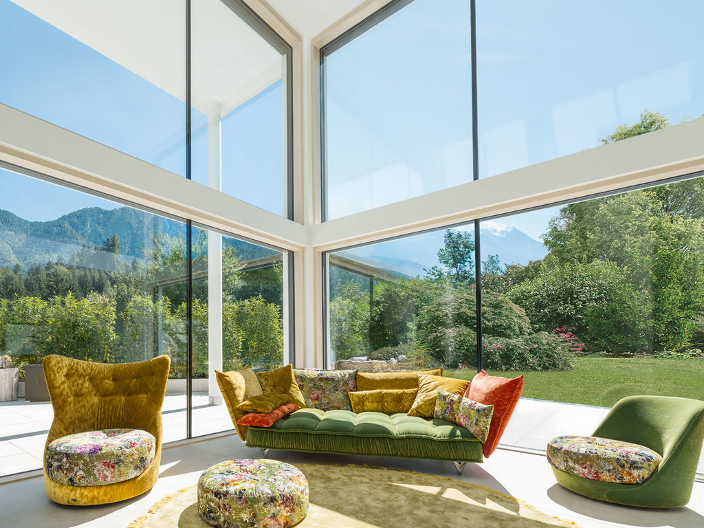 Treu dieser Philosophie fügen sich studio Fenster und Türen von Internorm in Ihren erlesenen Wohnstil. Die überwiegend flächenbündigen Fenster- und Türsysteme können komplett in das Mauerwerk integriert werden.