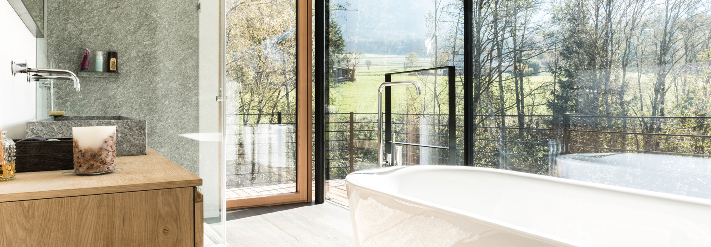 Holz ist ein starkes ästhetisches Charakterelement. Sie haben die Möglichkeit durch verschiedene Holzarten, Farbgebung und Oberflächenhaptik das Ambiente Ihres Wohnraums selbst zu bestimmen. Schaffen Sie sich Ihre persönlich abgestimmte Wohnatmosphäre durch die einzigartig vielfältigen Möglichkeiten mit Holz. Durch die Kombination aus Holz, Thermoschaum und Aluminium erhalten die Terrassen-Türen zusätzlich eine perfekte Wärmedämmung. Dank Aluminium – Design und Außenoberflächen haben sämtliche Fenster-Elemente einen einheitlichen Look und sorgen so für Langlebigkeit und Beständigkeit.